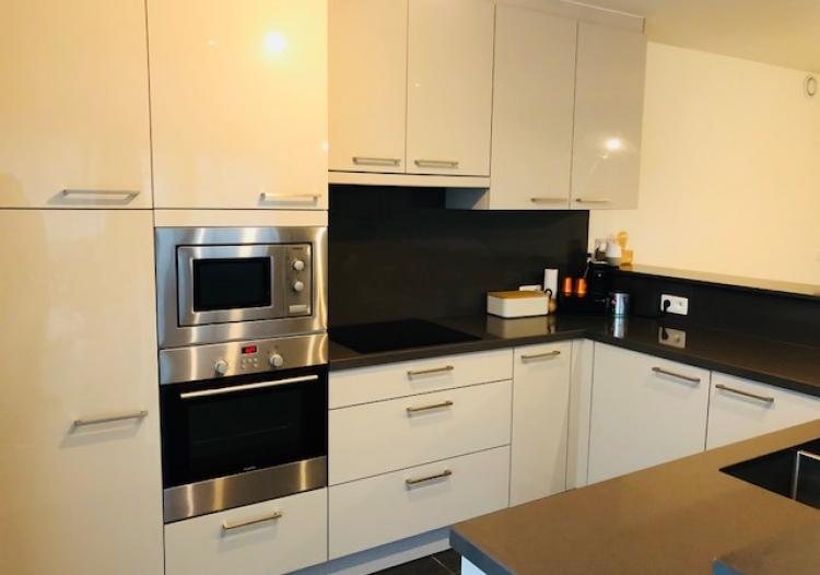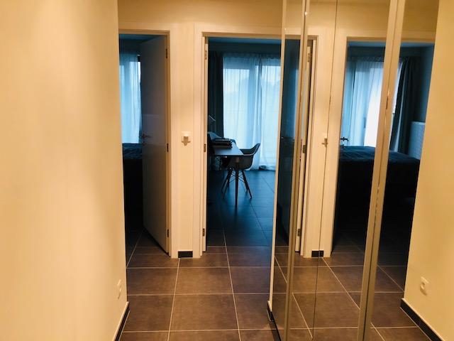 Het appartement bestaat uit een grote living met open keuken (voorzien van frigo, vaatwas, microgolfoven, oven). Het werkblad van de keuken is in composiet. In de hal is er een hele ruime vestiaire met spiegelkast. Het appartement beschikt over 2 ruime slaapkamers waar telkens een dubbel bed kan geplaatst worden. De badkamer beschikt over een inloopdouche, dubbele lavabo en bad. Er is een apart toilet. De berging is ruim en geeft o.a. plaats voor wasmachine en droogkast. Er is een ontkalker aanwezig.
