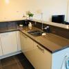 Het appartement bestaat uit een grote living met open keuken (voorzien van frigo, vaatwas, microgolfoven, oven). Het werkblad van de keuken is in composiet. In de hal is er een hele ruime vestiaire met spiegelkast. Het appartement beschikt over 2 ruime slaapkamers waar telkens een dubbel bed kan geplaatst worden. De badkamer beschikt over een inloopdouche, dubbele lavabo en bad. Er is een apart toilet. De berging is ruim en geeft o.a. plaats voor wasmachine en droogkast. Er is een ontkalker aanwezig.